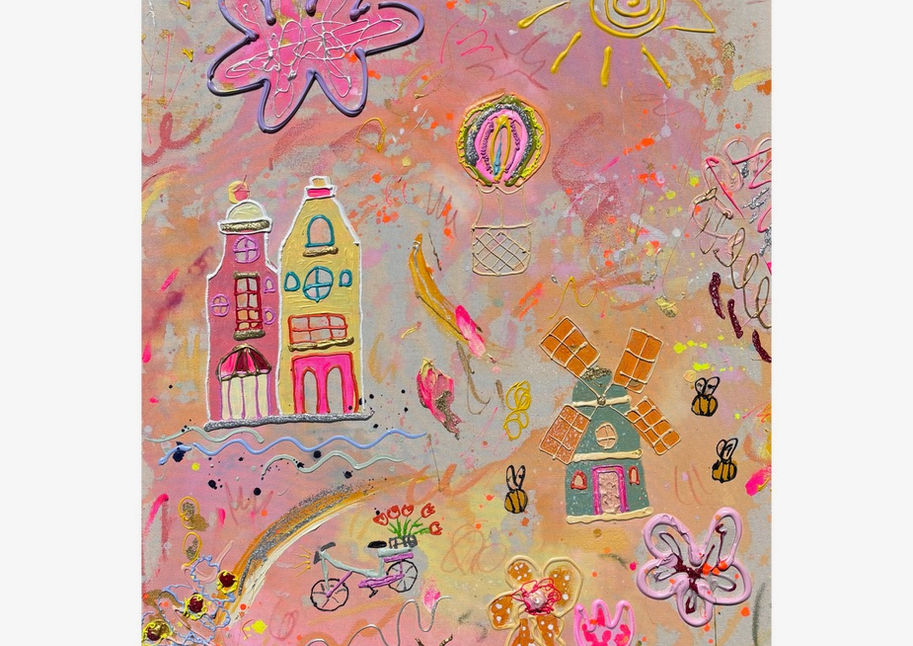 Natural-colored canvas on a wooden frame60 x 80 cmAcrylic | Acrylic pen | Acrylic ink | Pastel chalkIncludes shadow gap wooden frame