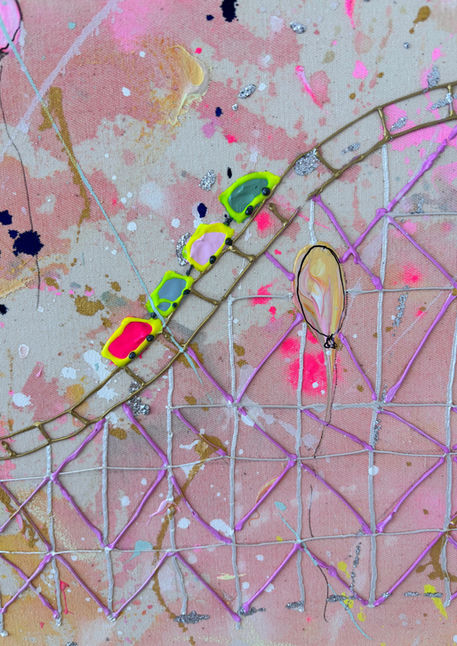Natural-colored canvas on a wooden frame100 x 150 cmAcrylic | Acrylic pen | Acrylic ink | Pastel chalkIncludes shadow gap frame in linden wood